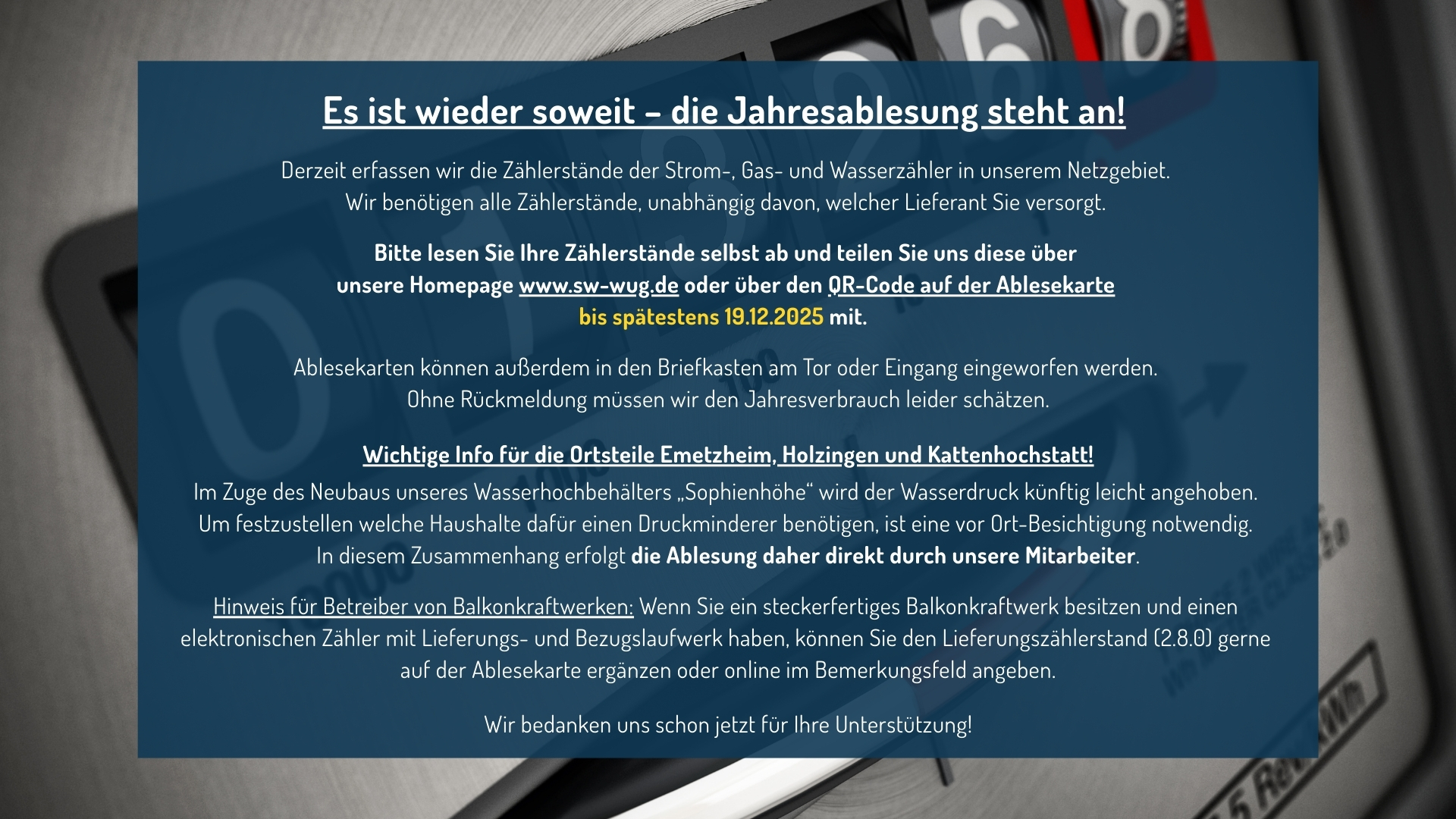 Wichtige Informationen der Stadtwerke Weißenburg GmbH